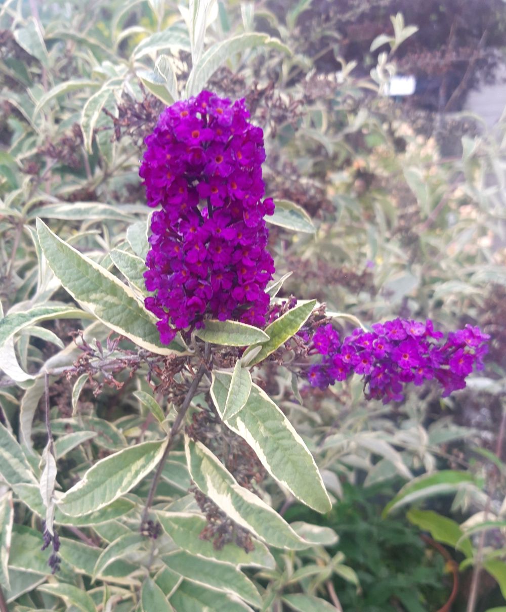Úvod » OKRASNÉ ROSTLINY » listnaté stromy a keře » KOMULE PURPUROVÁ, PANAŠOVANÝ LIST - Buddleja davidii ´Harlequin´