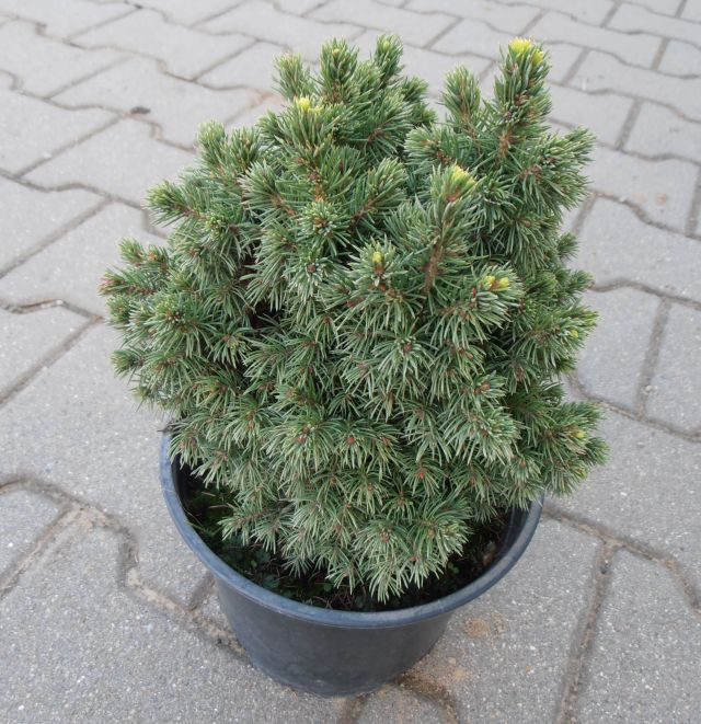 Vzrůst je zakrsle kulovitý, hustý. Jehlice jsou krátké, svěže zelené barvy.