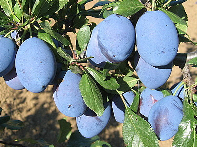 Plod je velký, podlouhlý, tmavě modrý s ojíněním. Dužnina je žlutozelená, šťavnatá, navinule sladké chuti. Jde dobře od pecky.
